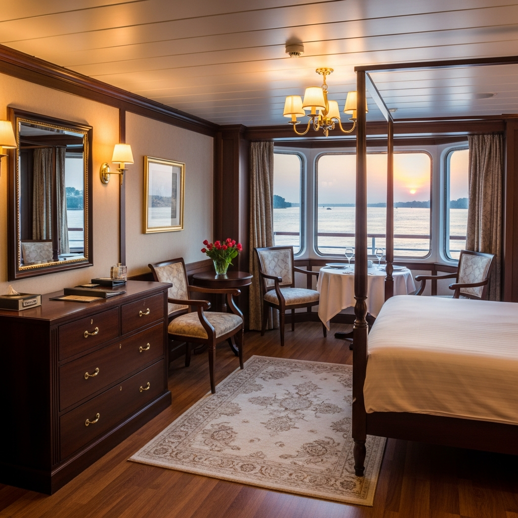 From hand-carved woodwork to brass fittings and fine linens, our suites are designed as private sanctuaries where you can watch the world drift by in absolute comfort.